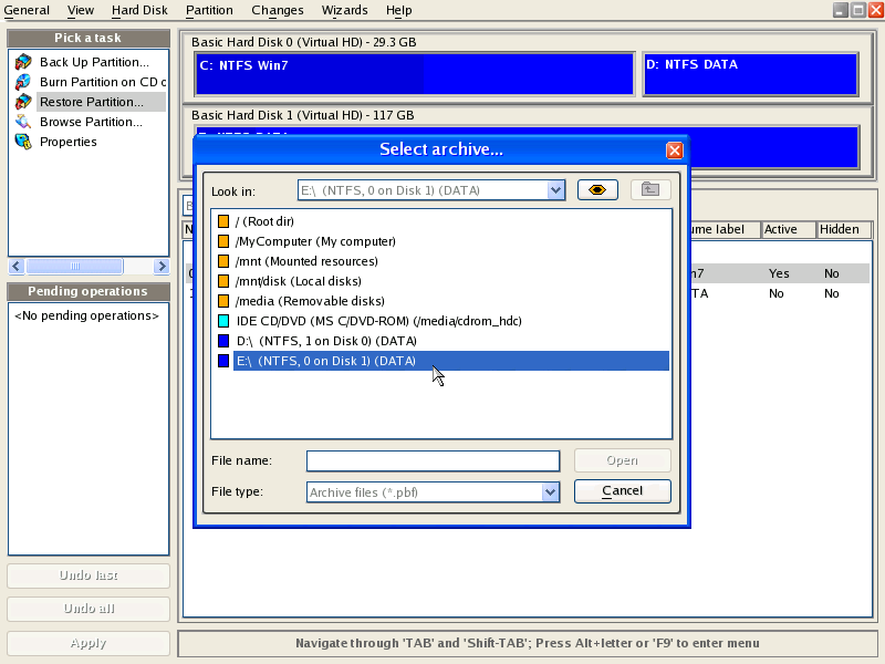 Highlight the backup image (it should be in *.PBF format) and click [Open].