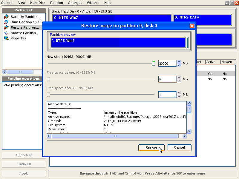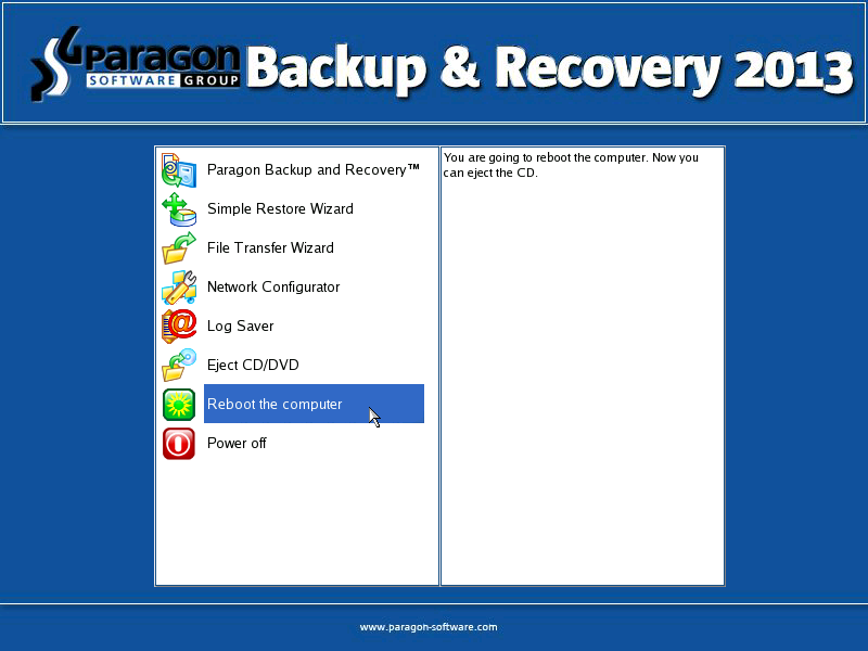 In this illustration, the task is accomplished by booting from a Paragon Rescue CD.