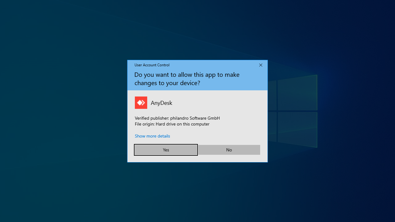 If prompted by a UAC window, Client must click "Yes" to allow AnyDesk to control the computer.