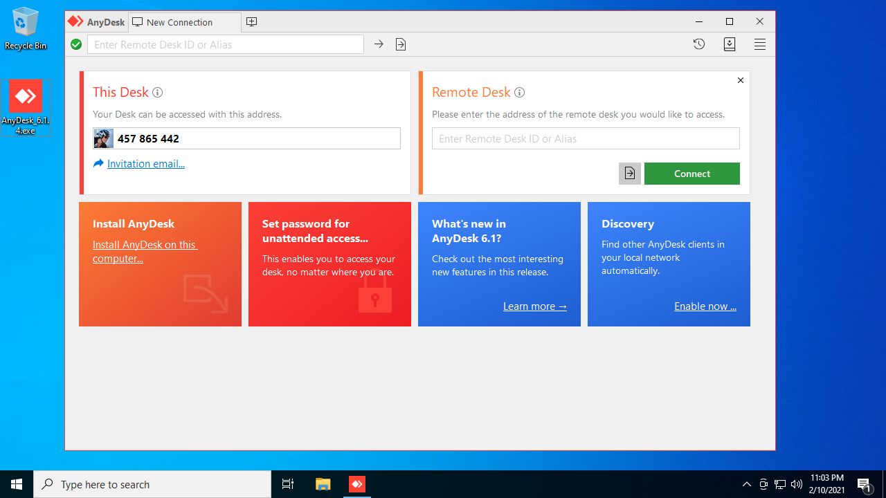 AnyDesk can be run as a portable app that requires neither installation nor registration.