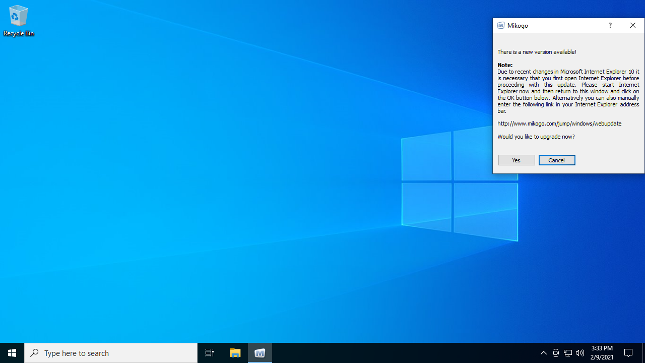 If Mikogo dispays an alert about a new version, click "Cancel" to ignore.