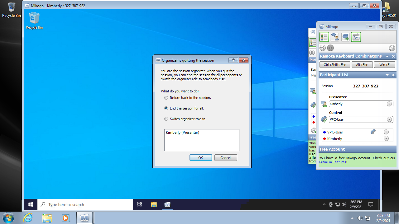 To host a session, however, the person providing help will need to have a Mikogo account.