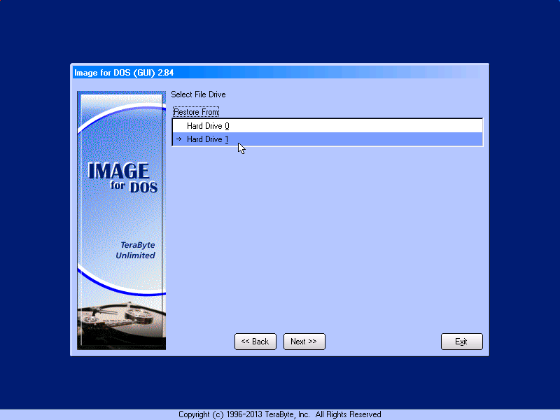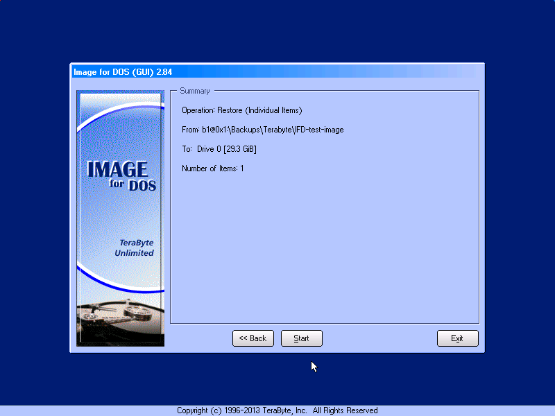 In this example, the backup image is \Backups\Terabyte\IFD-test-image.TBI in the DATA partition on Hard disk 1.