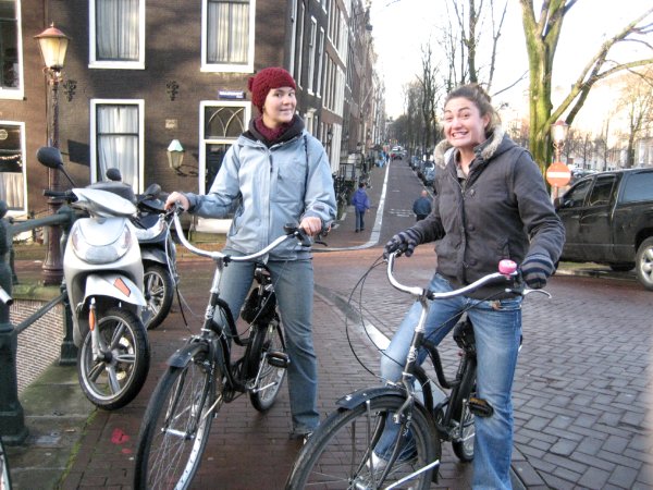 Whitney and Jodie travelled around Amsterdam by bicycle.