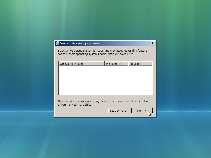 (We're going to restore the Vista partition from the Dell factory image, so we do not need to repair the existing Vista installation.)