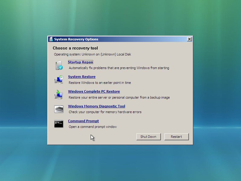 This is the main System Recovery Options menu.