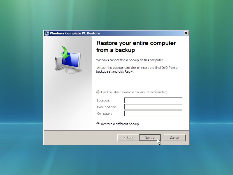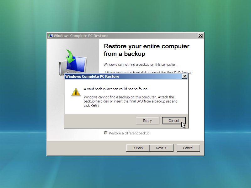 If you see this dialog box, click the "Cancel" button to tell Windows to stop looking for a Windows backup.