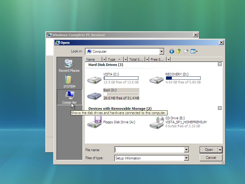Windows Vista - Manual Restore from Dell Factory Image