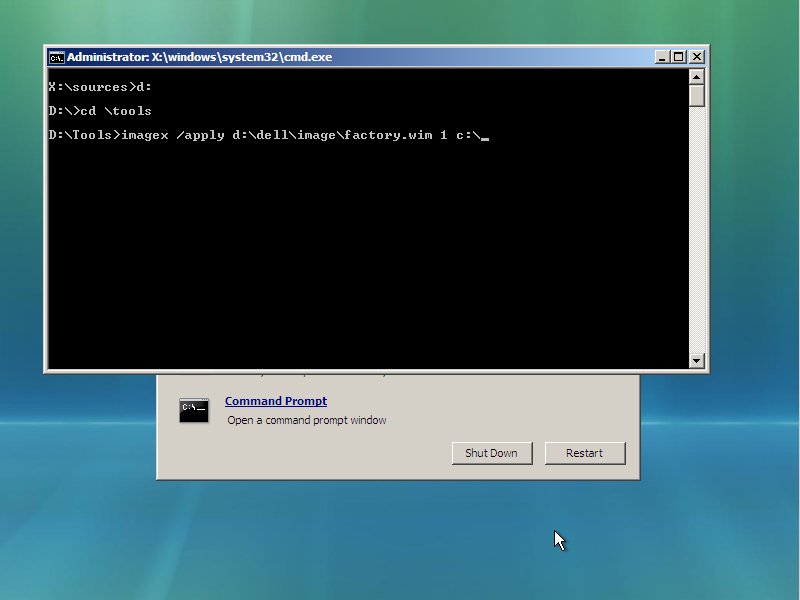 imagex /apply d:\dell\image\factory.wim 1 c:\