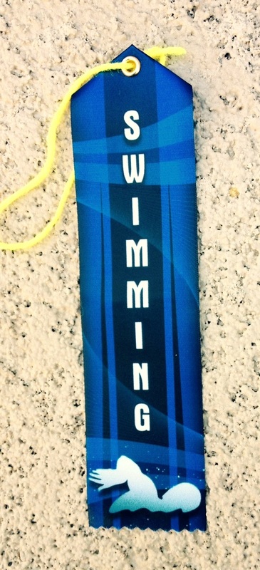 On the bright side, I did score 4th place in my age division, and since the woman who placed 1st currently holds the World Record, she doesn't really count, so it's more like I got 3rd. Also, I won this nifty ribbon! Swimming, YEAH!