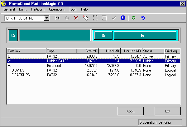 this time, anyway. (By the way, the drive letters PartitionMagic shows