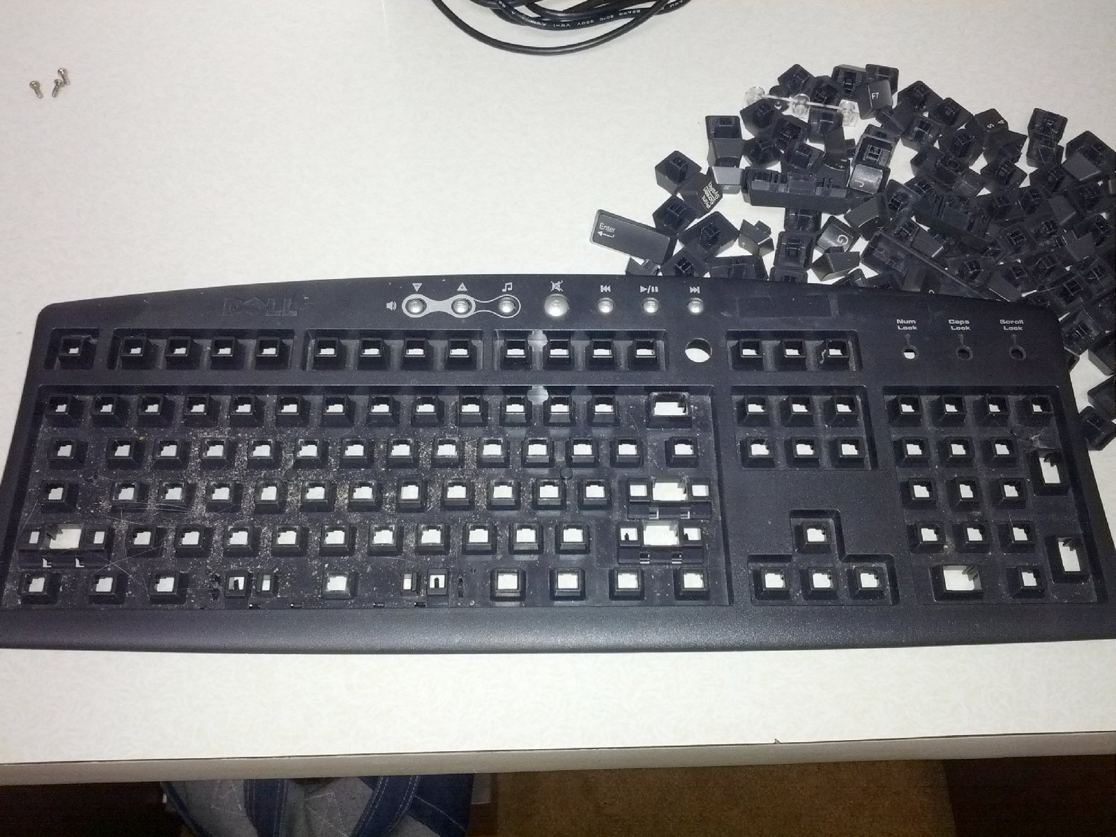 The separated keys and topshell are now ready to be washed.