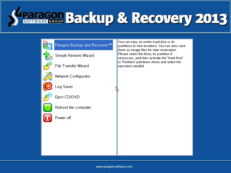 In this illustration, the task is accomplished by booting from a Paragon Rescue CD.