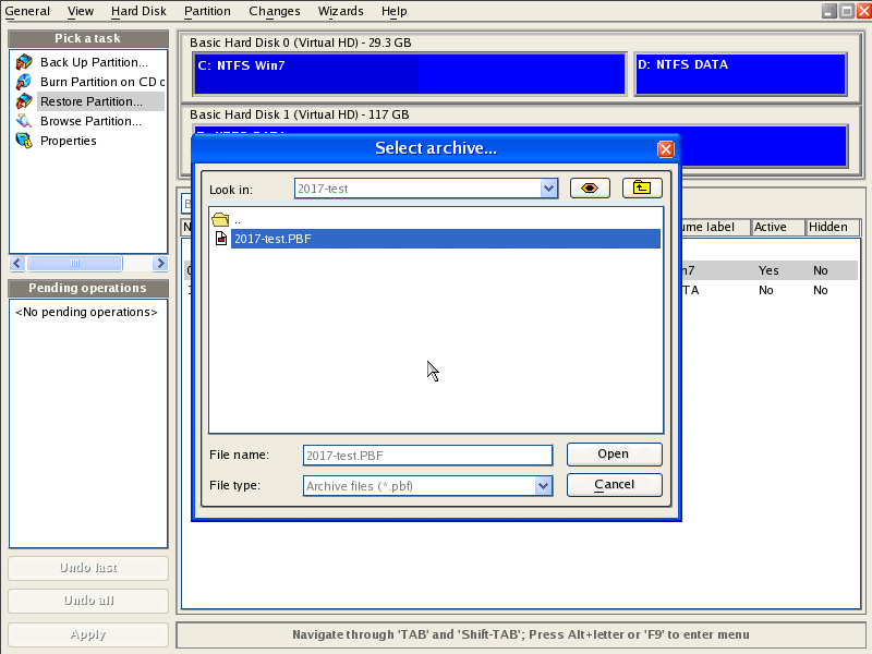 Highlight the backup image (it should be in *.PBF format) and click [Open].