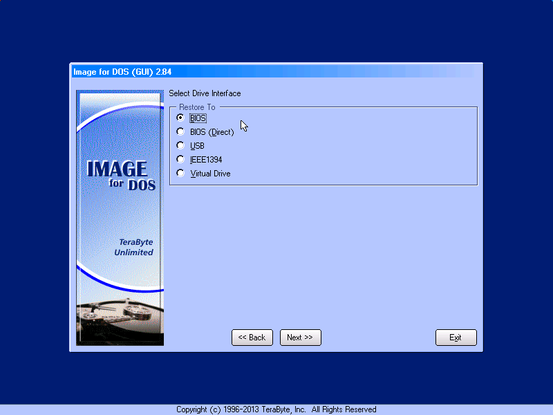 If you are booting from stand-alone "Image for DOS" boot media, boot the program and continue with Step 2.
