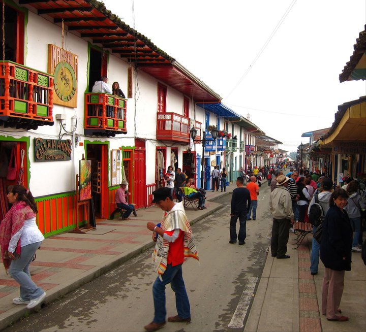 The town itself is packed with color and artisan life. The main street is a gorgeous little narrow road lined on either side with tiny shops selling all sorts of great works of art - jewelery, woodwork, paintings (incredible paintings!), clothing, traditional Colombian sombreros, and lots of great little cafes that serve (of course) delicious coffee.