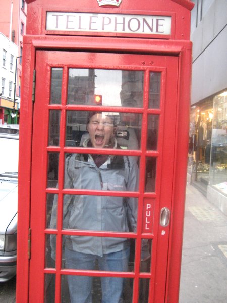 Calling from a phone booth.