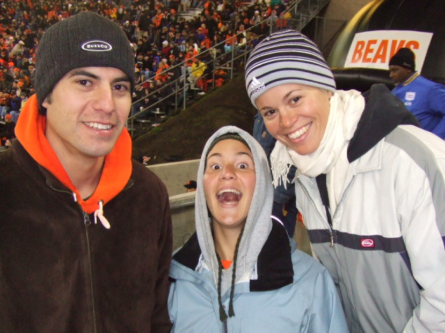 Whitney's brother and sister travelled to see her final collegiate soccer game. Here, they're watching the OSU football team beat the University of Washington.